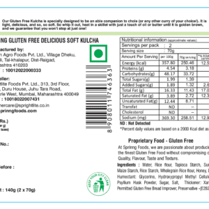 Our Gluten Free Kulcha is specially designed to be an able companion to chole (or any other curry of your choice!). It is light, delicious, and so, so soft. So whip it out, heat in a skillet with just a touch of oil or butter until it is golden brown, and we guarantee that you won’t stop at just one! It is a low GI index food.